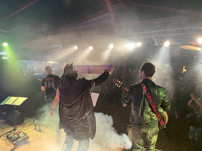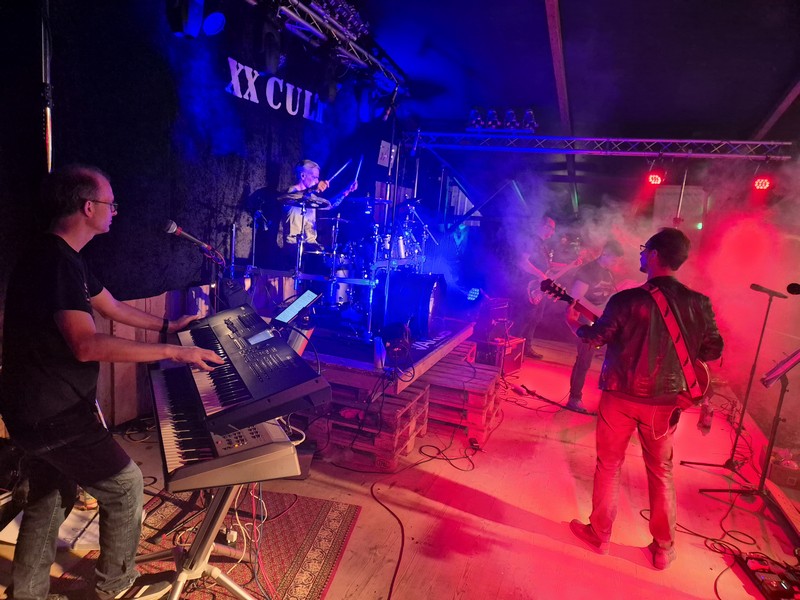 Am Sa 26. Juli spielten wir zum ersten Mal beim Motorradfäscht in Grunholz. Während dem Aufbau hatten wir leider mit einigen ordentlichen Regenschauern zu kämpfen (kurzzeitig war Land unter auf der Wiese). Die Motorradfreunde Grunholz haben auf ihrem "Fäschtplatz" mit dem  großen Feuer (mit den beiden hohen Fackeln im Hintergrund) ein sehr schönes Ambiente geschaffen. Nachdem der Regen aufgehört hatte, füllte sich das Zelt und der große Platz um das Feuer nach und nach. Die "Stage Pigs" eröffneten den Abend und spielten erstklassig ausgewählte Coverversionen u.a. von Black Sabbath, Iron Maiden, The Police, Lenny Kravitz. Die Jungs gaben über eine Stunde Vollgas auf der Bühne. Kurz nach 21 Uhr hatten wir unsere Premiere in Grunholz. Bei "Rebel Yell" mussten wir die Jungs natürlich nochmal auf die Bühne holen. Vielen Dank an die Jungs und Mädels aus Grunholz für einen klasse Abend. Es hat auch uns großen Spaß gemacht und wir kommen gerne wieder!